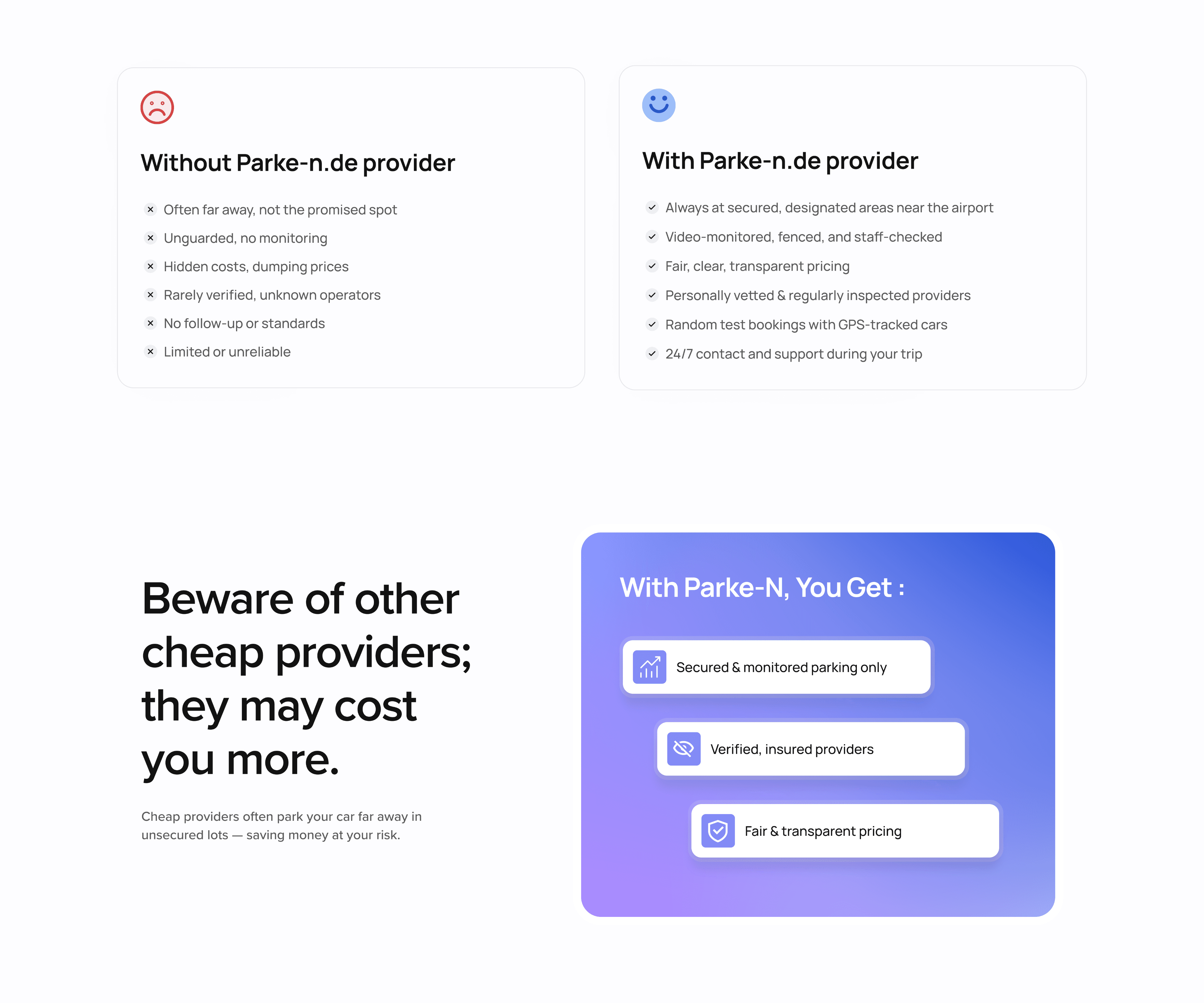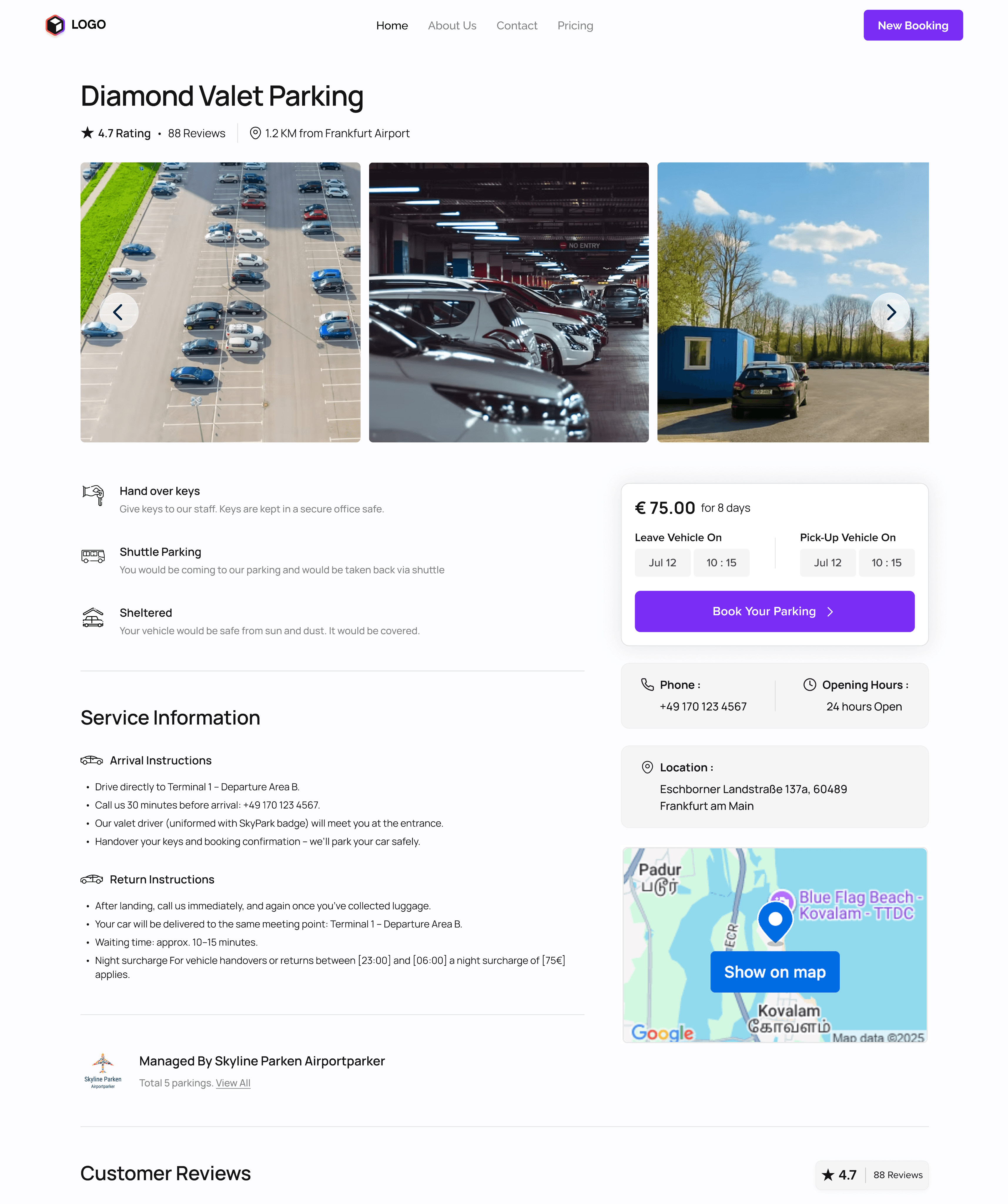 This project for a German airport parking platform demonstrates your skill in balancing a dual-sided marketplace with high information density, ensuring a seamless experience for both travelers and parking vendors.