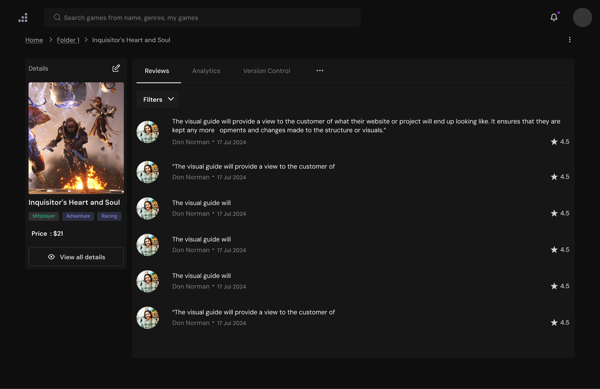 To make the dashboard intuitive, I used a card-based layout for the game listings.