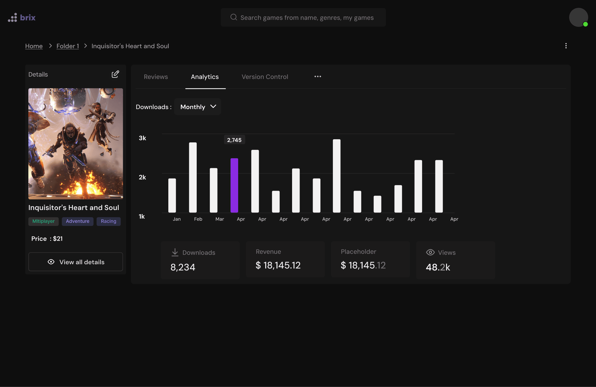 Sales Tracking: A basic dashboard to monitor how many "New" vs. "Resold" licenses were being transacted, providing developers with insights into their game's lifecycle.