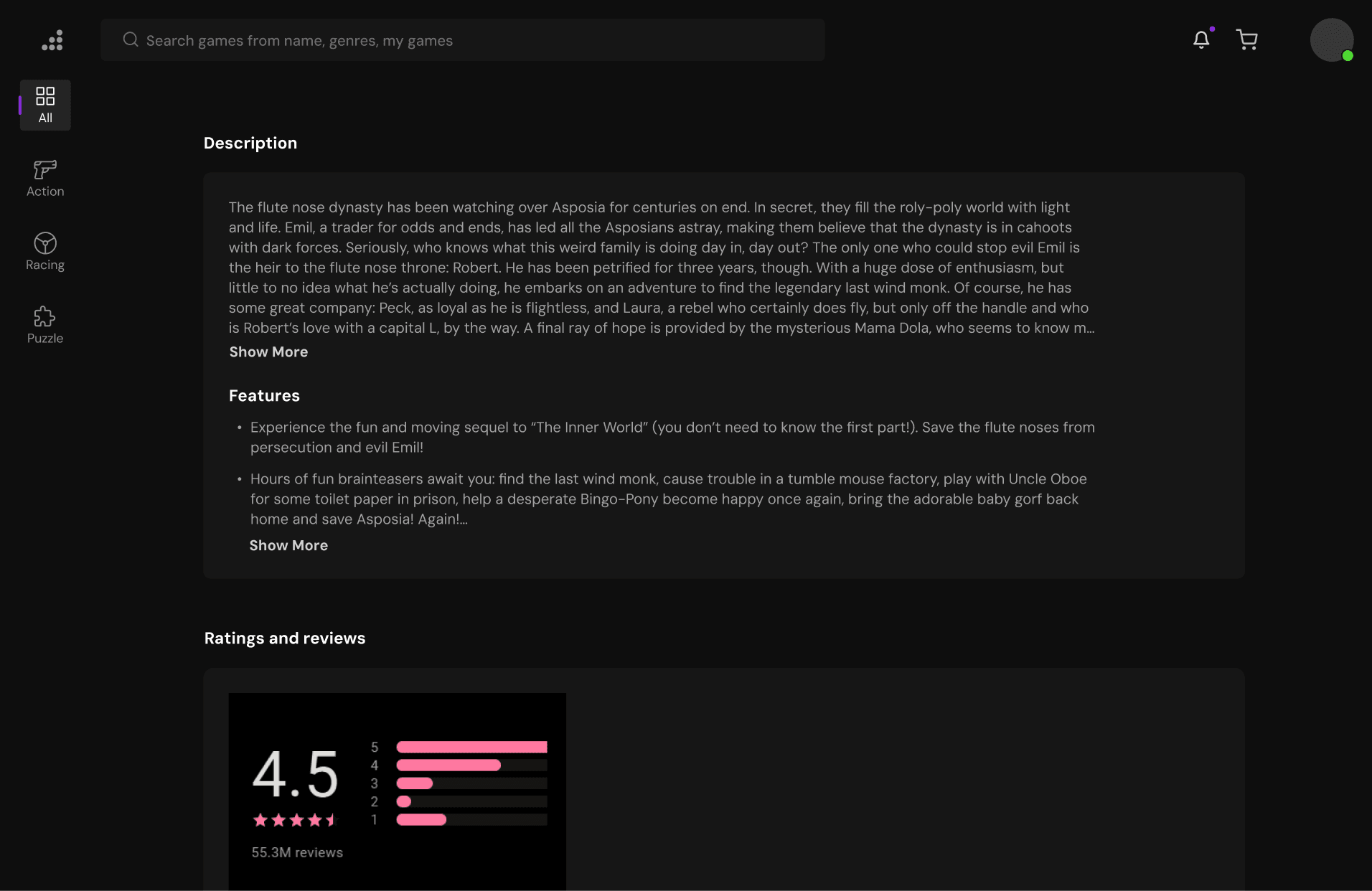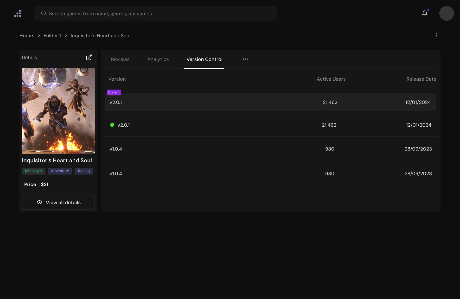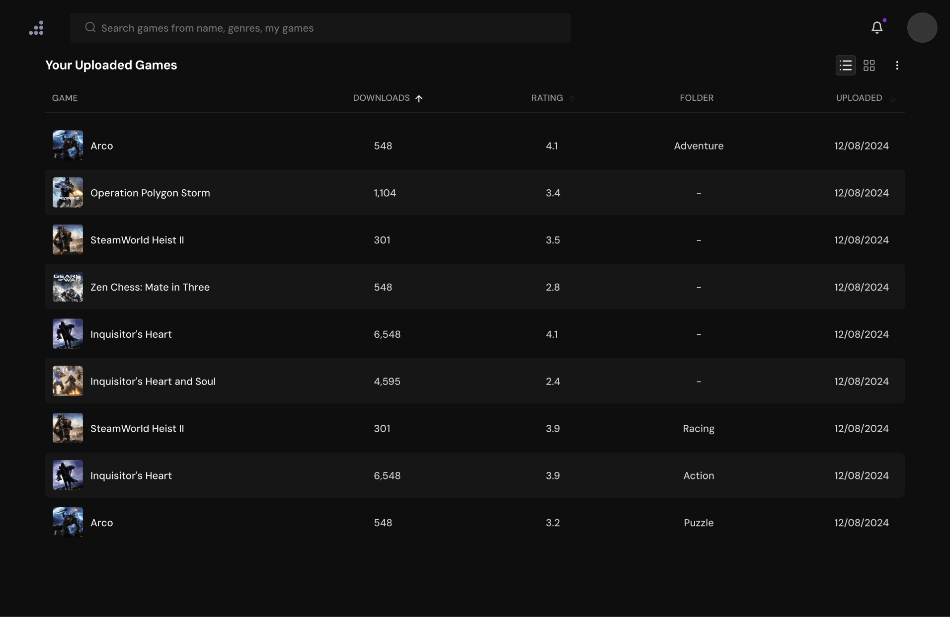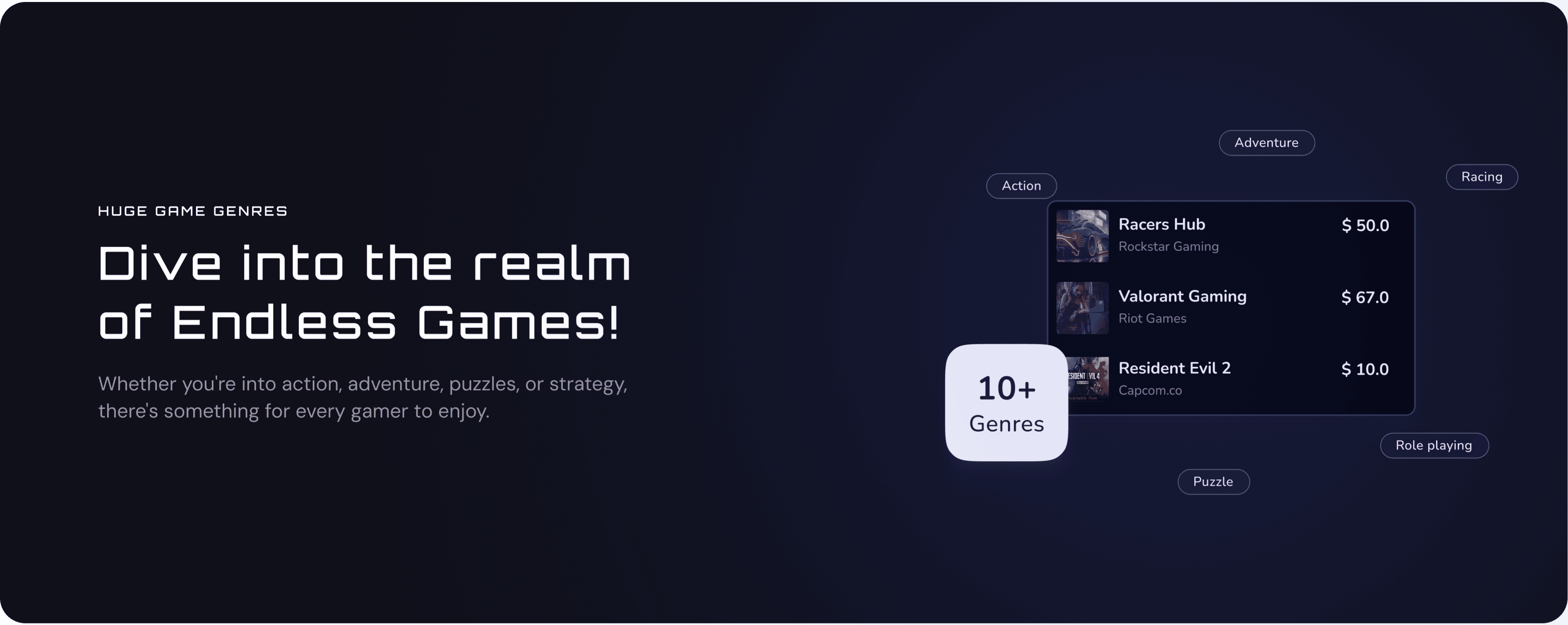 Initially, the dashboard was empty as it was in MVP stage. I had to architect a genre-based discovery system (Action, Racing, Puzzle, etc.) to ensure the marketplace felt "populated" and easy to navigate.