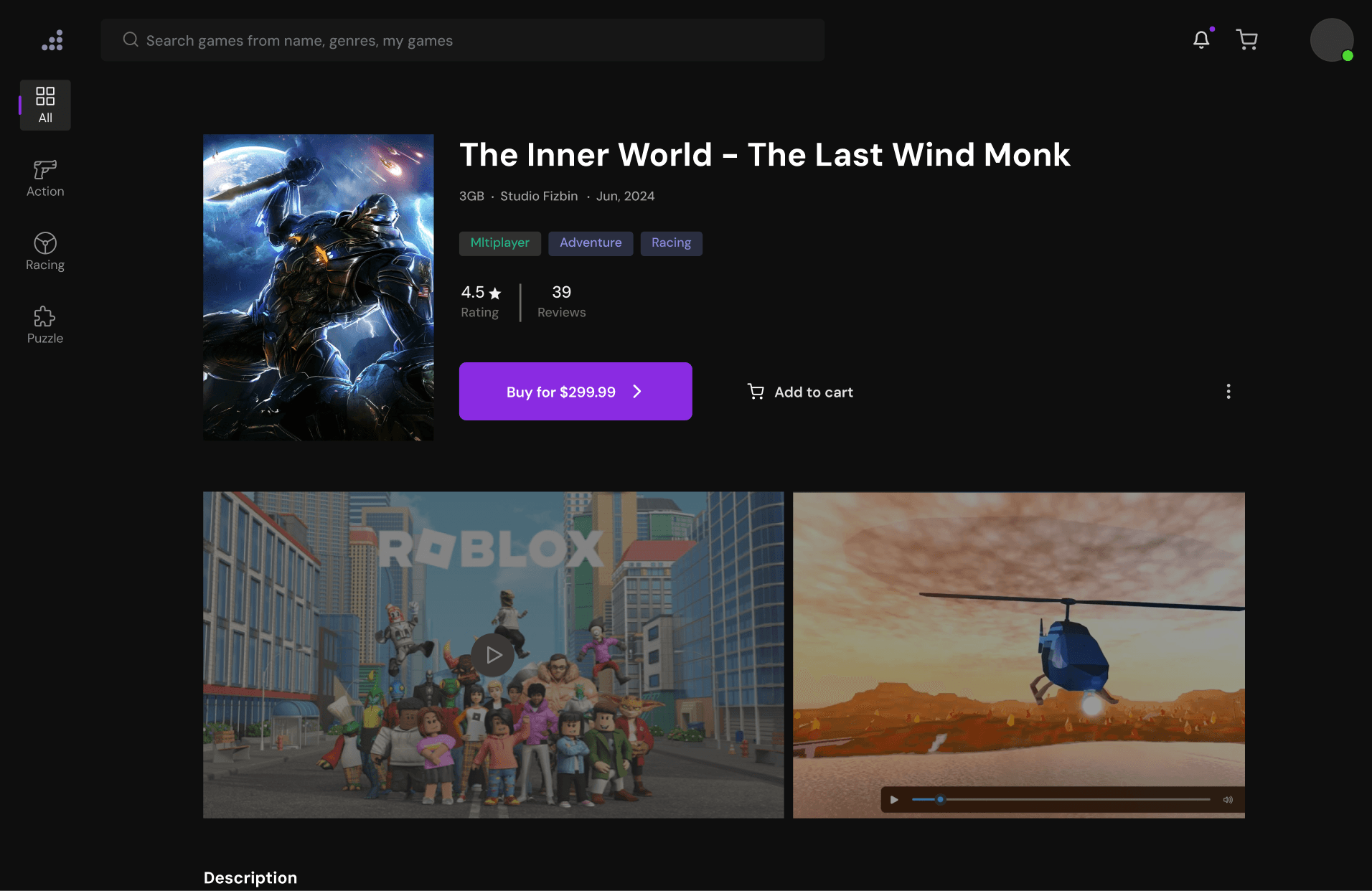 Deploy Games: A simple upload and metadata entry flow to get games onto the marketplace.