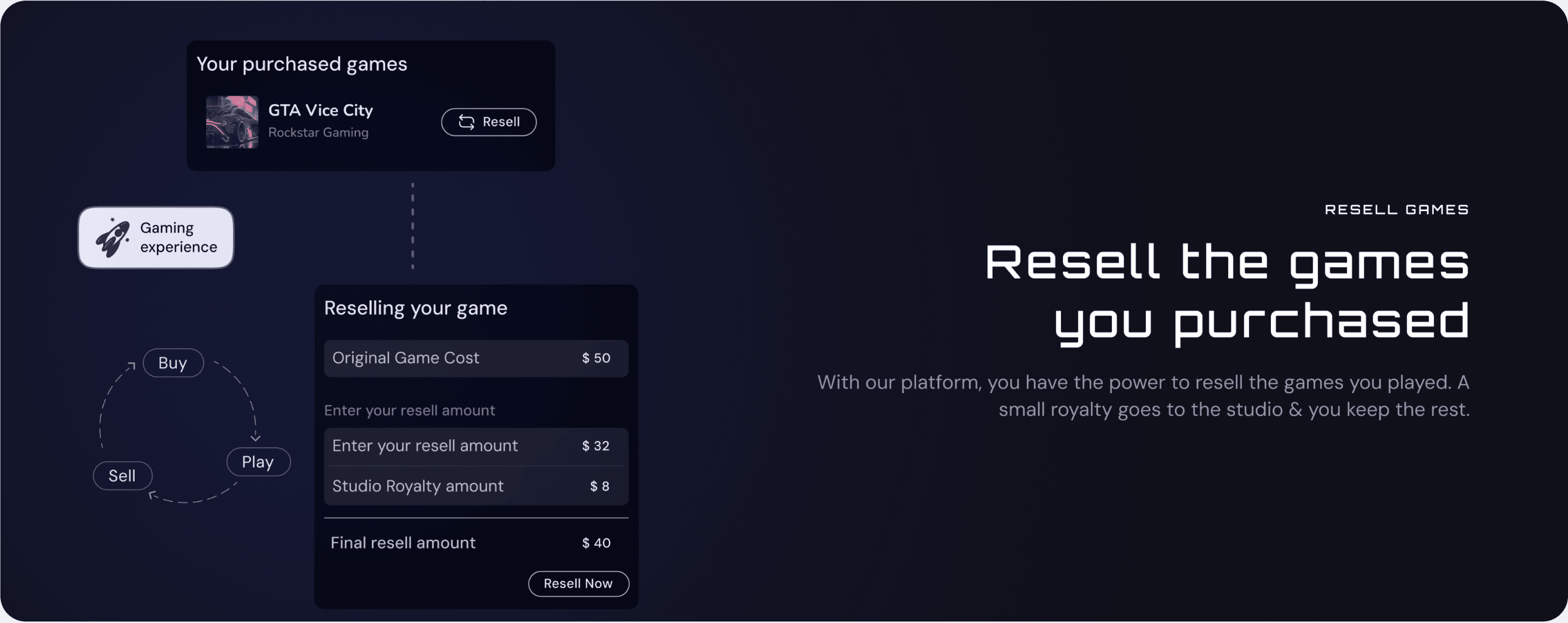My role was to architect a dual-sided MVP where gamers could purchase titles and later "re-list" their digital licenses for other users, while providing developers with a streamlined portal to deploy games and track their lifecycle in the secondary market.