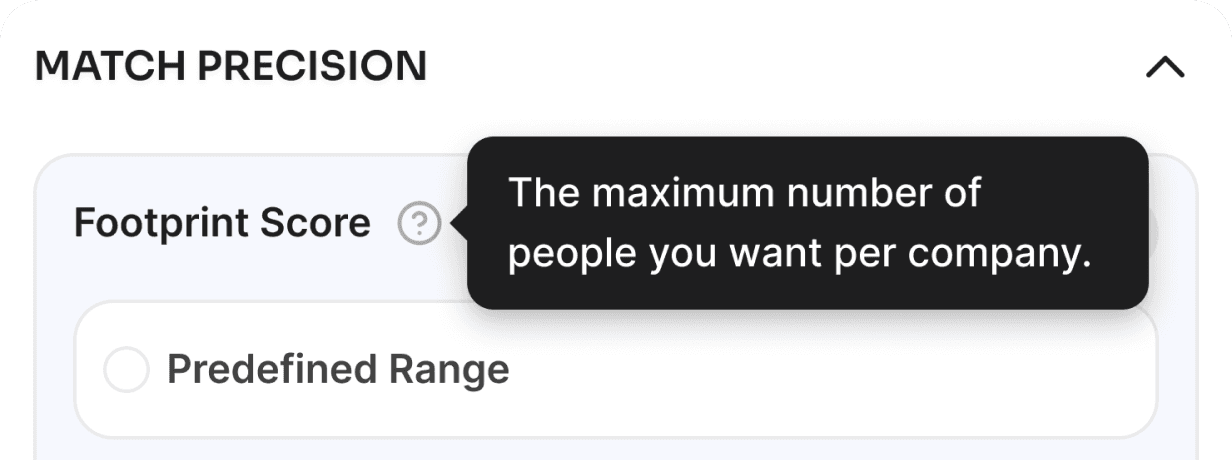 The sidebar contained a massive number of filters (Footprint score, Consensus, Match Precision, etc.) that lacked visual hierarchy, causing significant cognitive load.