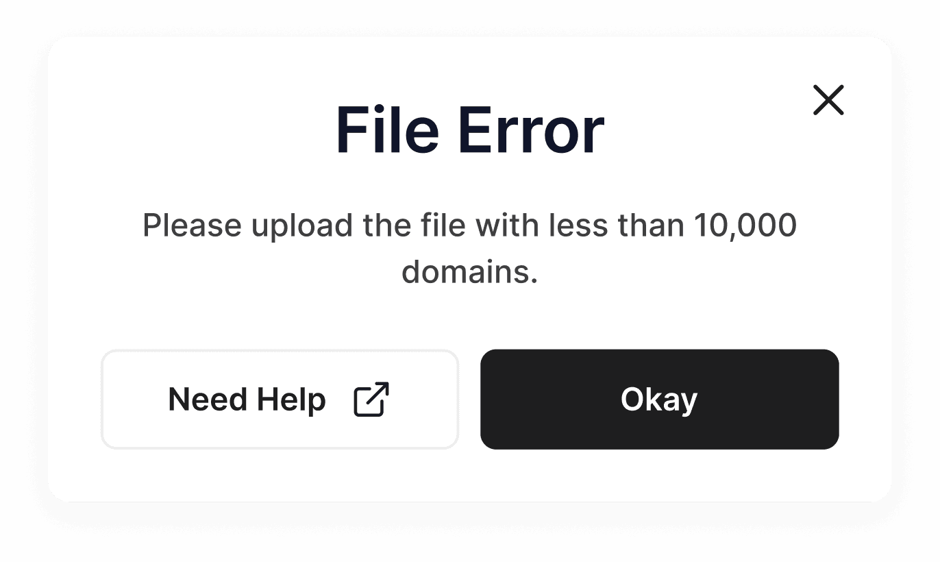 Capacity Limits: If a file exceeded 10,000 domains, a warning appeared to prevent system overload and provide a clear cap.